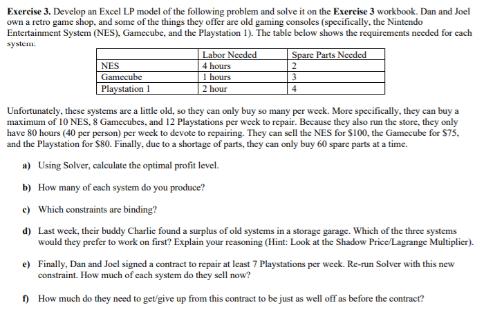 Solved Exercise 3 Develop An Excel Lp Model Of The Chegg Com